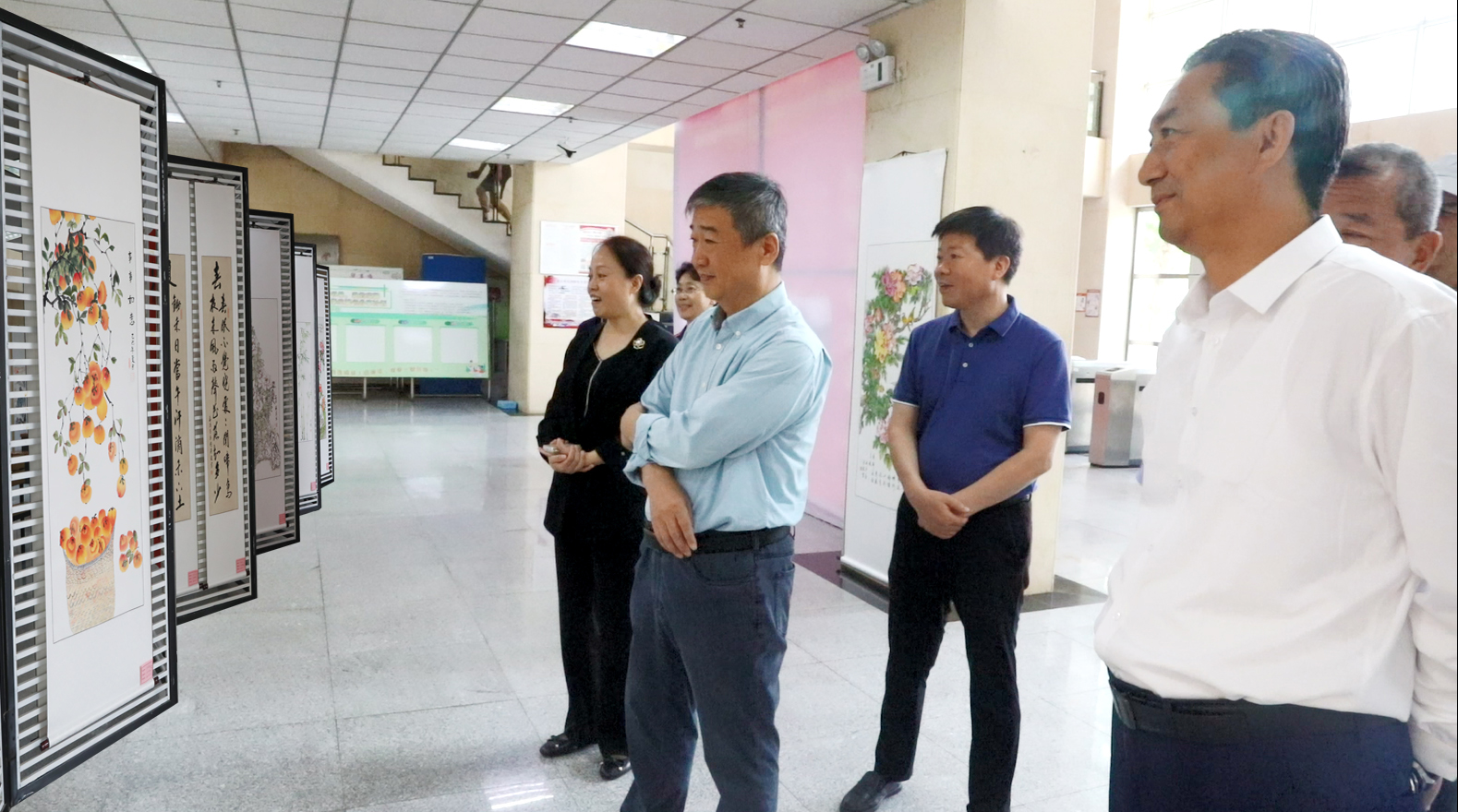 学校党委书记孙政、校长张明莉、副校长马爱林参观展览