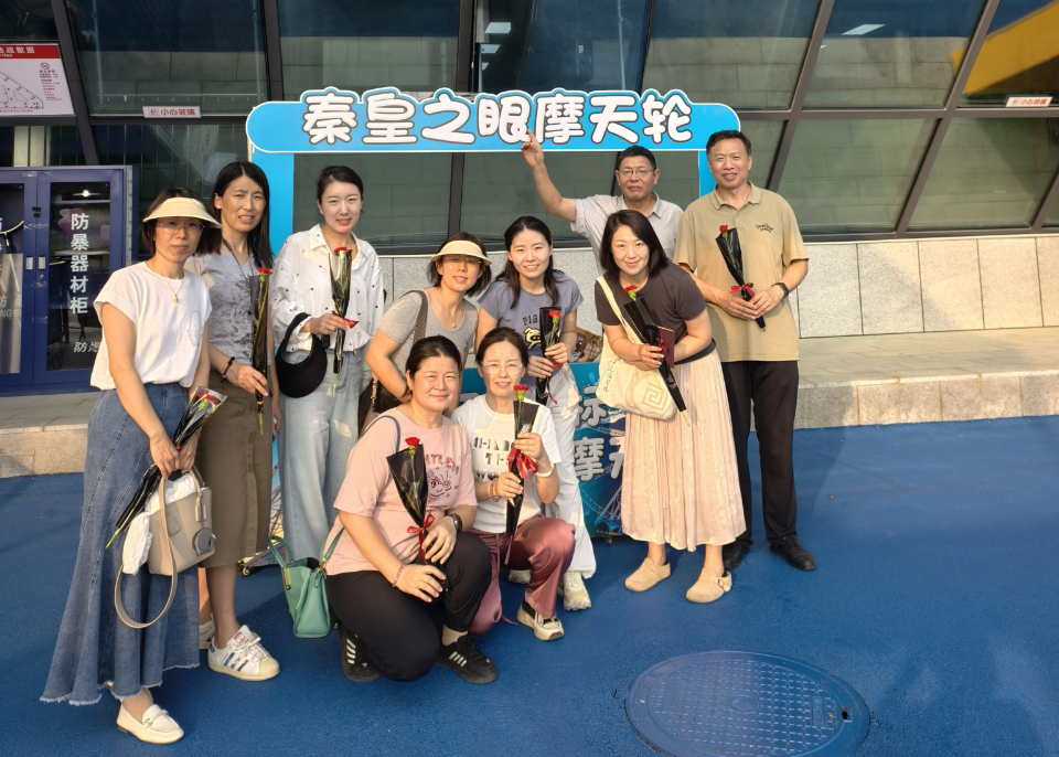 本次活动充分考虑了老师们的时间安排,采用了“集中组织”与“分散参与”相结合的灵活形式。活动当日下午,学院为无教学任务的老师们安排了集中的摩天轮体验时段。大家暂时告别繁忙的工作,相聚在摩天轮下,欢声笑语,气氛热烈。老师们手持红色玫瑰,分批登上轿厢。随着摩天轮缓缓攀升,城市的景色逐渐铺展在脚下,老师们在轻松惬意的氛围中交流工作与生活,俯瞰城市建设的日新月异,也感受着身心的放松与愉悦。