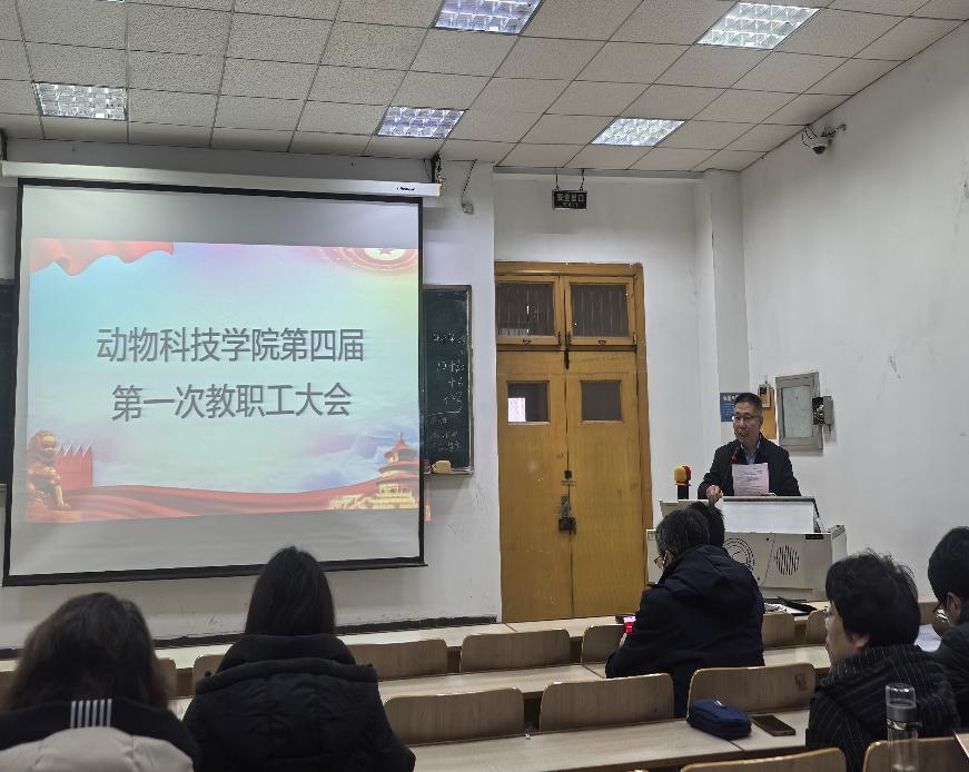 2025年11月27日,动物科技学院顺利召开第四届第一次教职工暨工会会员大会,会议由分工会主席任铁艳主持,学院领导、教职工和工会会员代表共同参加了此次会议。