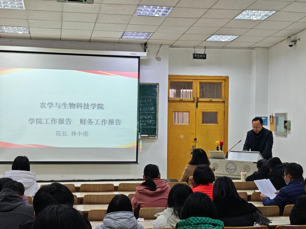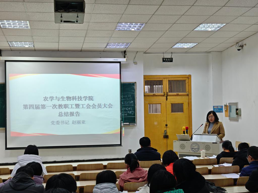 经院党委同意、校工会批准,农学与生物科技学院于2025年12月13日下午2点召开了第四届第一次教职工暨工会会员大会。教职工暨工会会员共61人参加了会议。会议由学院分工会主席高欣主持。