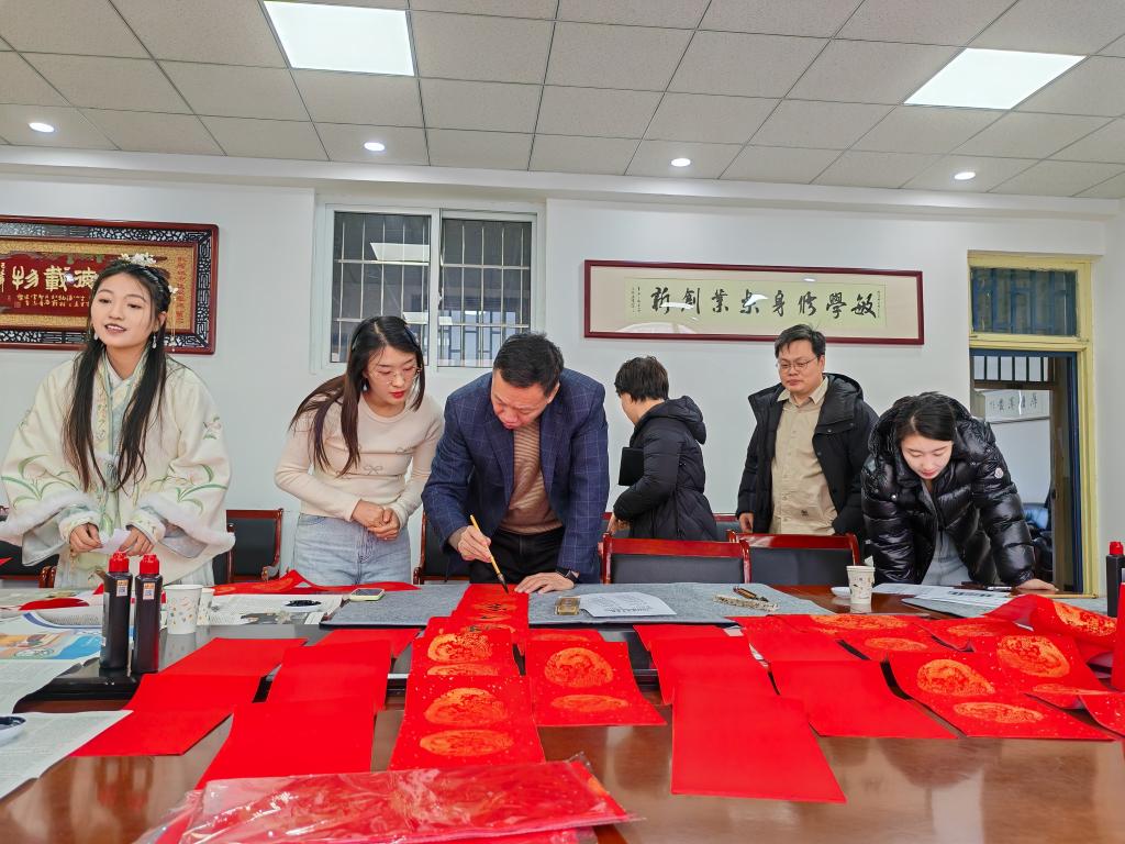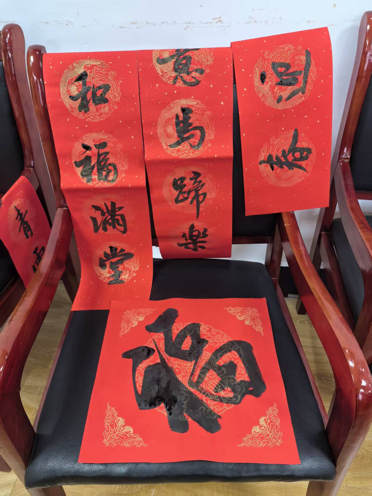 书法,是中华文化的瑰宝;春联,是迎春纳福的象征。当笔墨纸砚遇上新春佳句,不仅是对传统习俗的传承,更是我们抒发情感、寄寓美好期盼的绝佳方式。各位领导老师暂时放下忙碌的工作,执起毛笔,在横竖撇捺间感受书法的魅力,在字斟句酌中体会对联的韵味,共同书写属于我们自己的新春祝福。无论是否书法高手,大家尽情挥洒,享受这份笔墨之间的宁静与喜悦。党委书记赵建平、院长李政和安赛博士作为主要书写人,为会员们现场创作墨宝成品。最后,各位会员开开心心选到了自己喜欢的书法作品,带回了新春第一份吉祥。