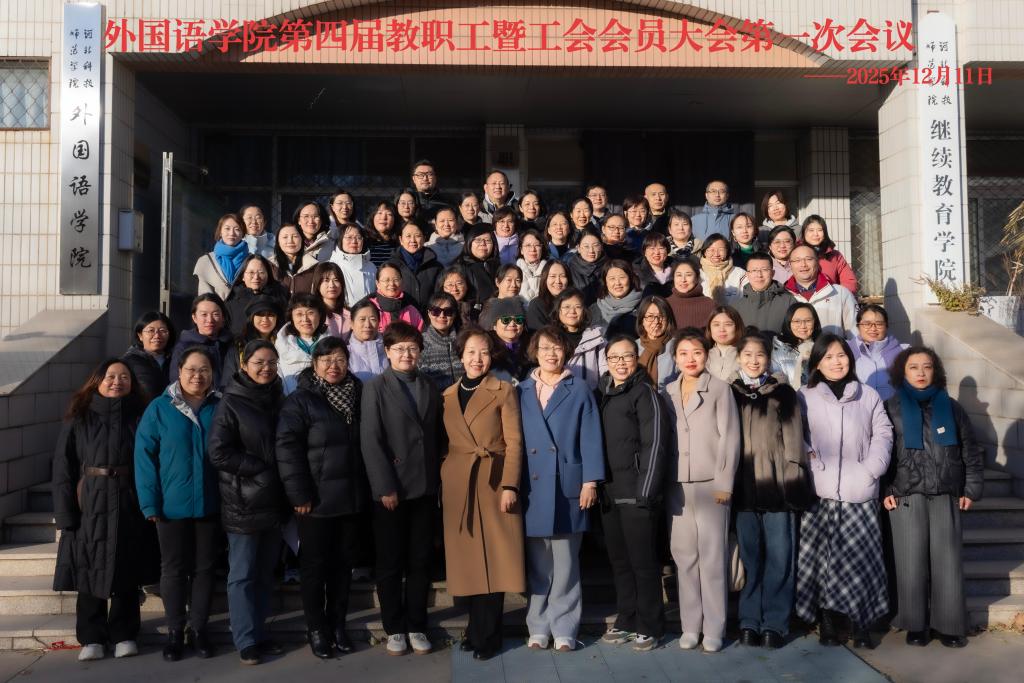 12 月 11 日下午,外国语学院第四届教职工暨工会会员大会第一次会议如期举行。全院教职工齐聚一堂,围绕 “凝心聚力谋发展,守正创新谱新篇” 的主题共商学院发展,认真履行民主管理职责。