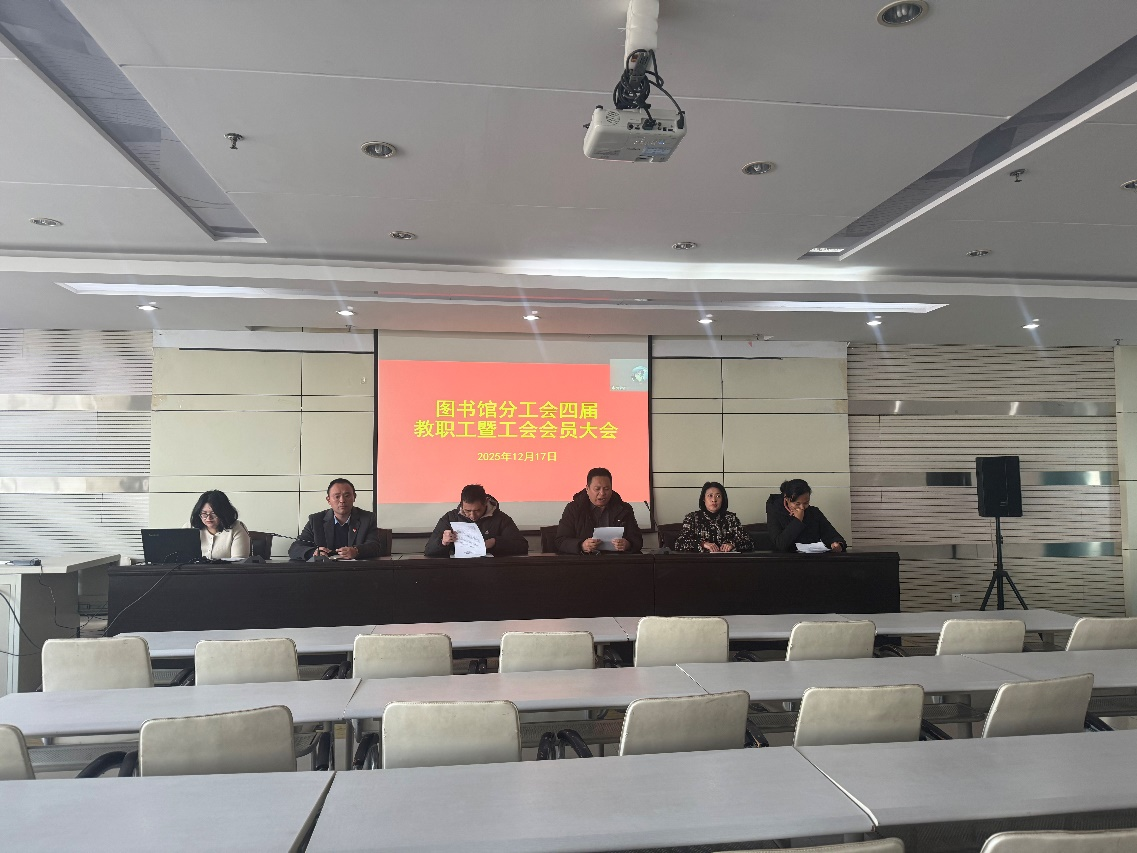 2025年12月17日,图书馆四届一次教职工暨工会会员大会成功召开。图书馆全体教职工参加会议,共商图书馆发展良策,共绘图书馆事业蓝图。大会由图书馆分工会副主席盛子强主持。