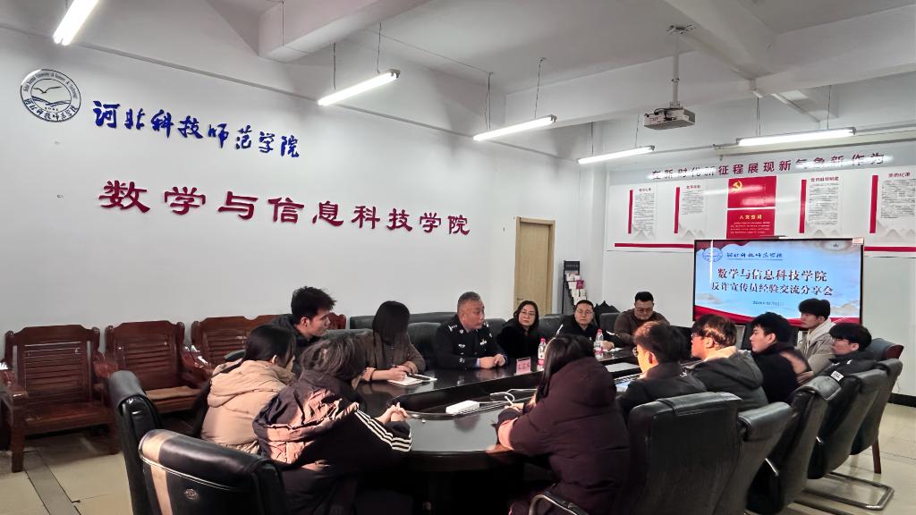12月10日,数学与信息科技学院分工会反诈宣传员经验交流分享会在逸夫楼A1001召开。本次活动紧密响应秦皇岛市高校反诈先锋志愿服务联盟工作部署,旨在进一步深化校园反诈宣传教育成效,筑牢平安校园防护网。秦皇岛市海港分局王宝军警官、学院学生工作负责同志、全体专职辅导员及10名学生党员反诈宣传员参加分享会。