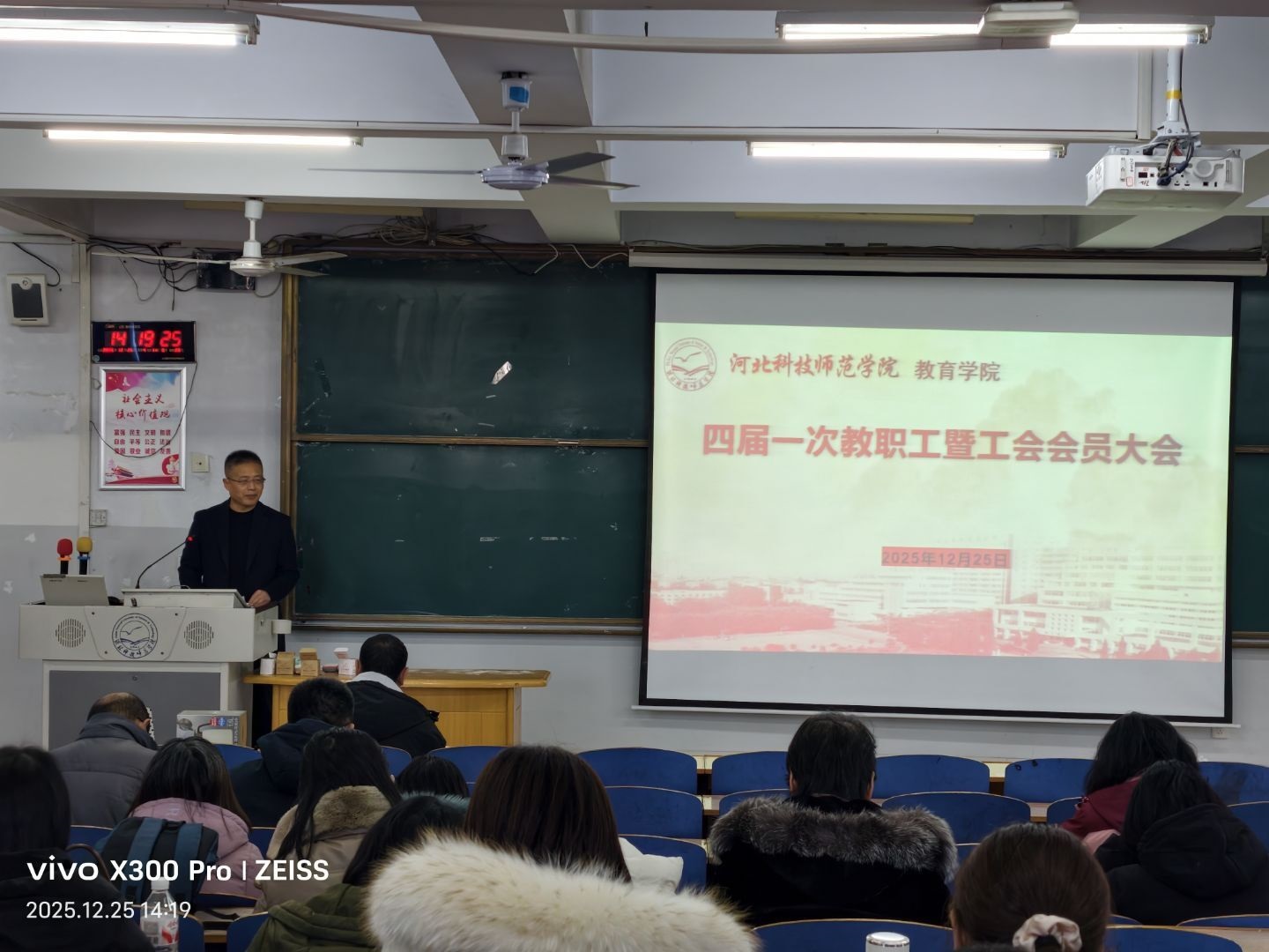 2025年12月25日下午,在综合楼212教室,教育学院召开第四届教职工暨工会会员大会第一次会议,学院全体教职工参加。