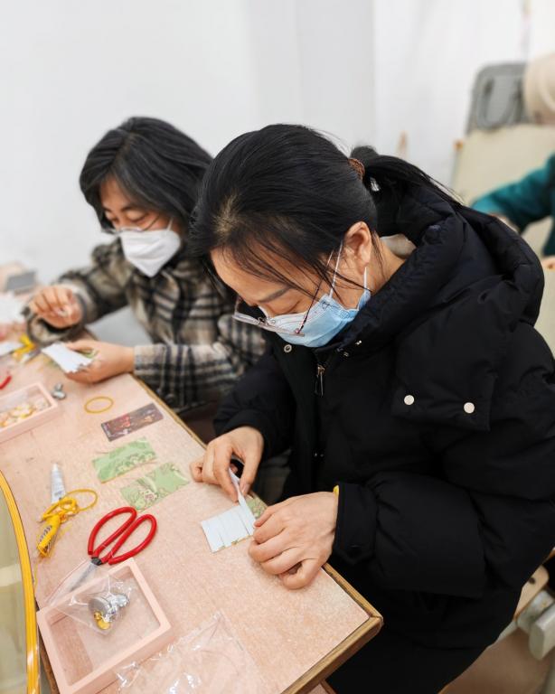 活动特邀专业手工艺老师现场授课,先为大家细致讲解宋锦的历史渊源、文化底蕴与制作工艺。手工实操环节,老师分步演示挂饰制作流程,从锦缎裁剪、图案拼接,到配饰组装、流苏固定,每一步都耐心讲解、手把手指导。平日里深耕讲台、伏案教研的女教职工们,化身巧手匠人,精心挑选花色面料,专注打磨细节,将对生活的热爱与美好期许融入指尖。经过一个多小时的用心制作,一件件精巧别致、寓意吉祥的宋锦挂饰陆续成型,作品风格各异、独具匠心,尽显女教职工们的巧手匠心与生活热忱。