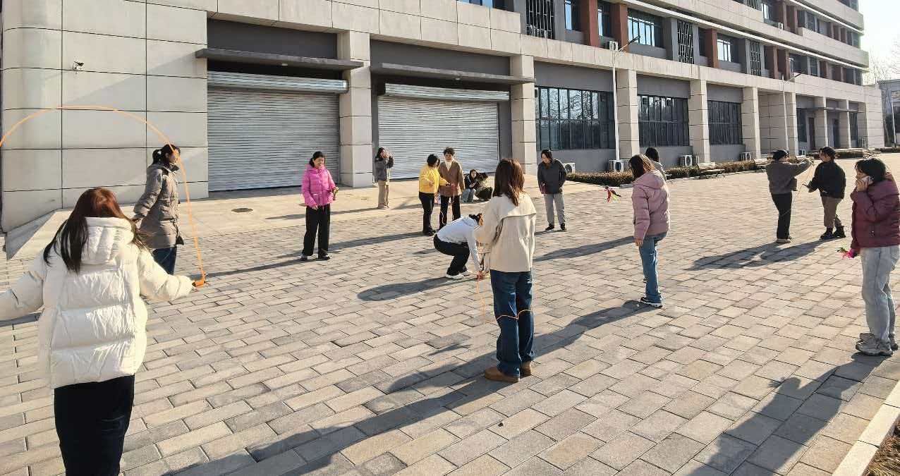 下午15时30分,活动在新实验楼北侧广场准时开始。女教职工们准时到场签到,随后在工作人员的带领下进行热身运动,活动关节、拉伸肌肉,为接下来的趣味活动做好充分准备。热身结束后,大家根据个人兴趣选择跳绳、踢毽子等项目,自由组队展开活动。老师们一改平日讲台上的严肃形象,尽情释放活力,展现出昂扬向上的精神风貌。现场气氛热烈,笑声不断。